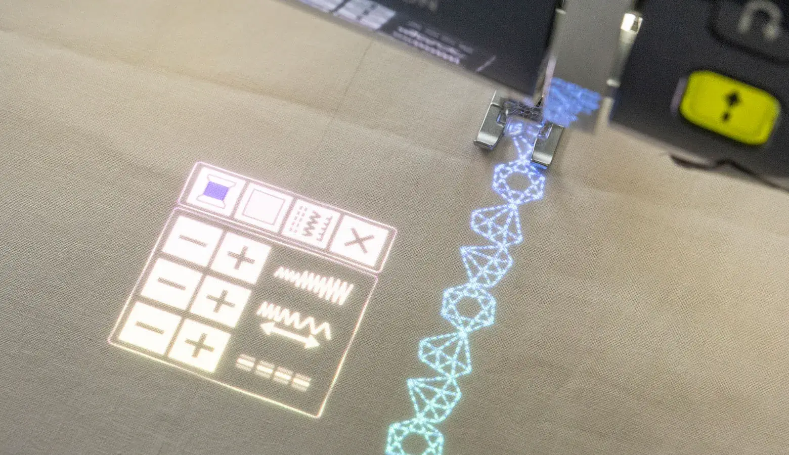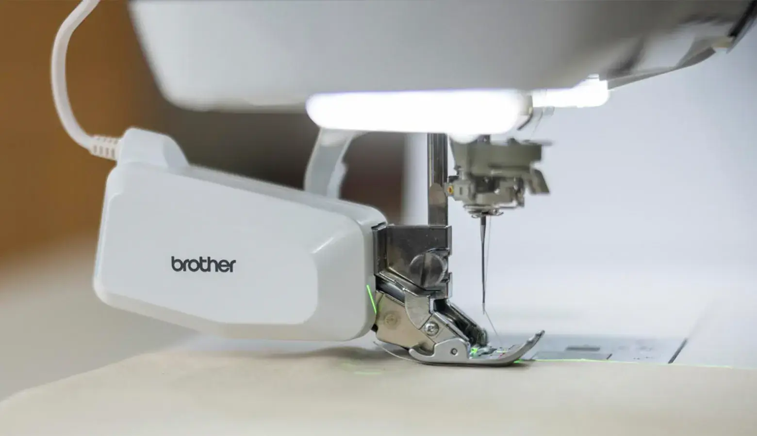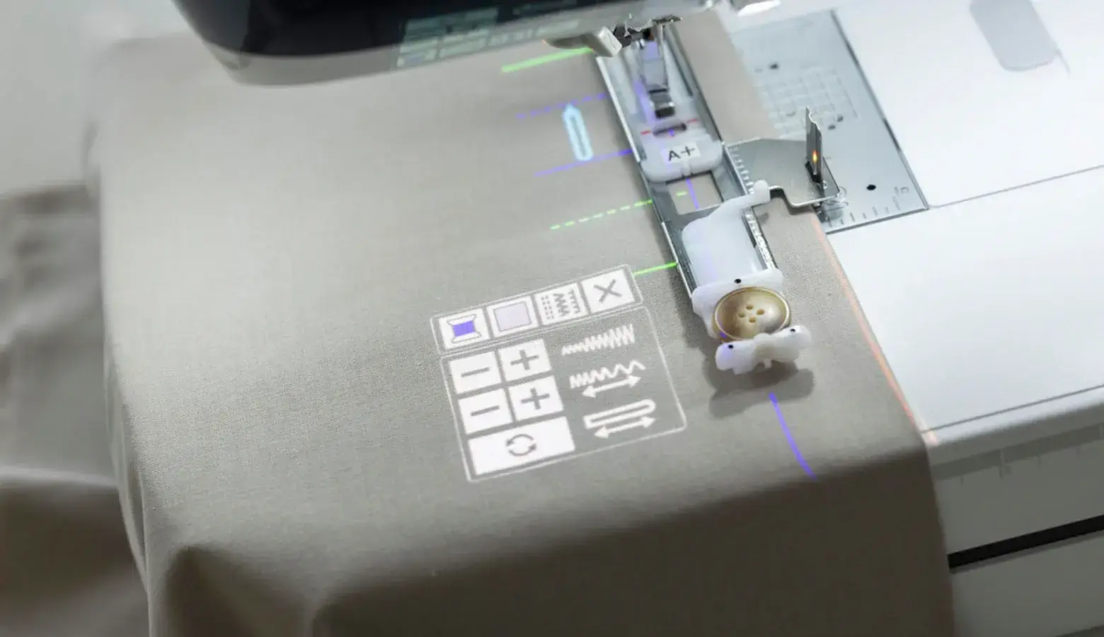 Z wbudowanym regulatorem ściegu z funkcją wykrywania krawędzi w podczerwieni.