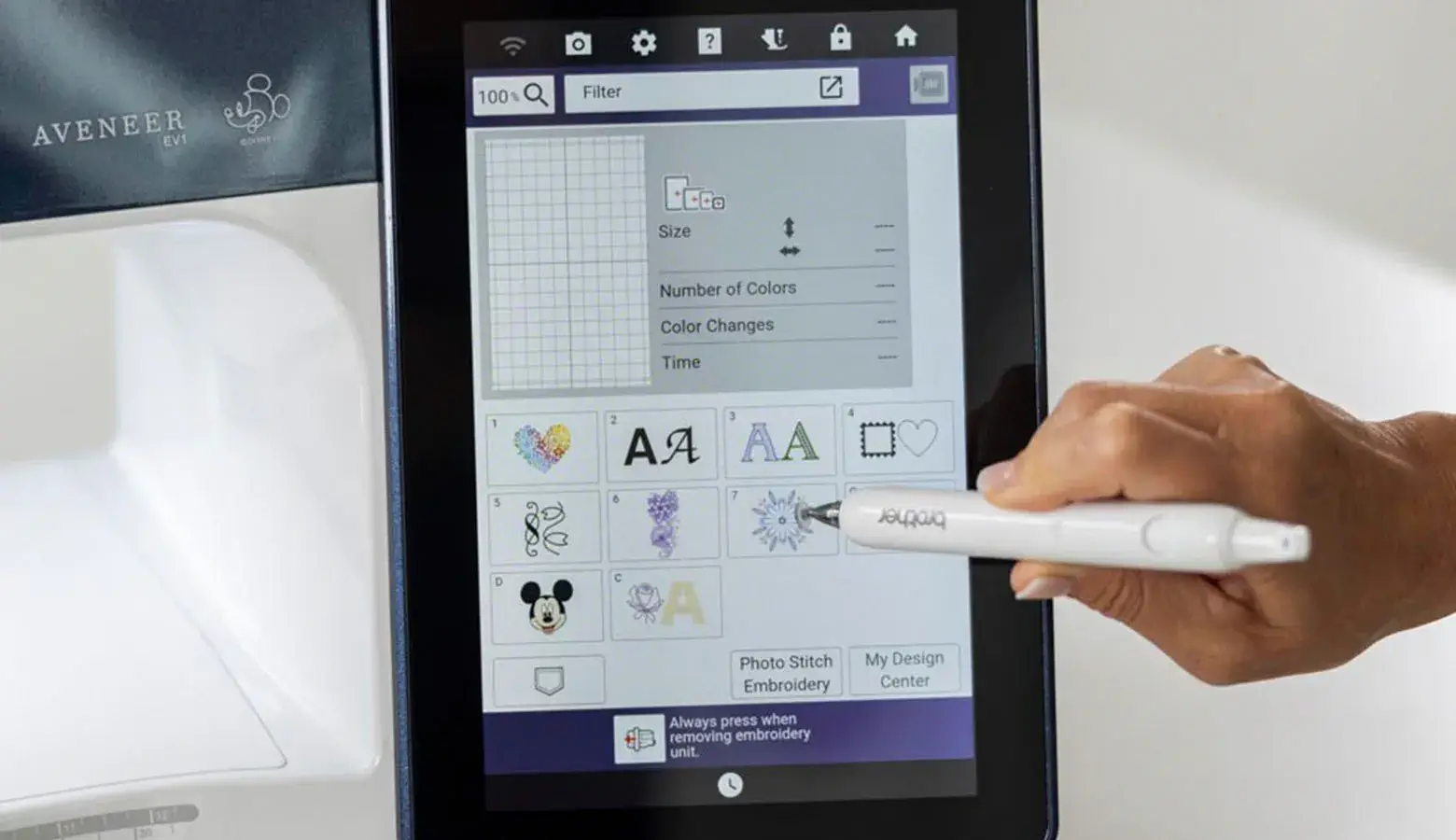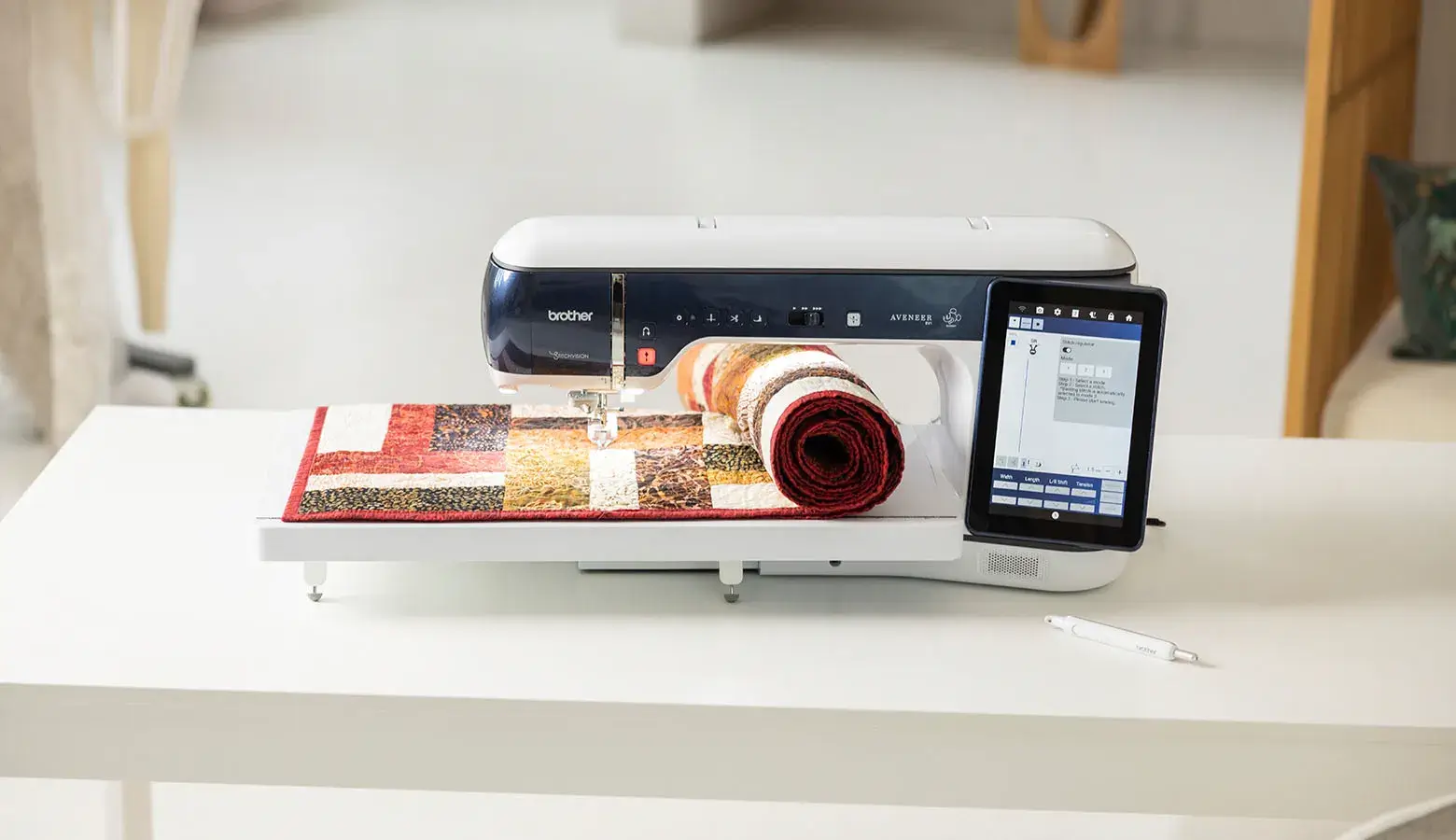 Aveneer EV1 to największa w historii maszyna do szycia, haftowania i pikowania od firmy Brother.