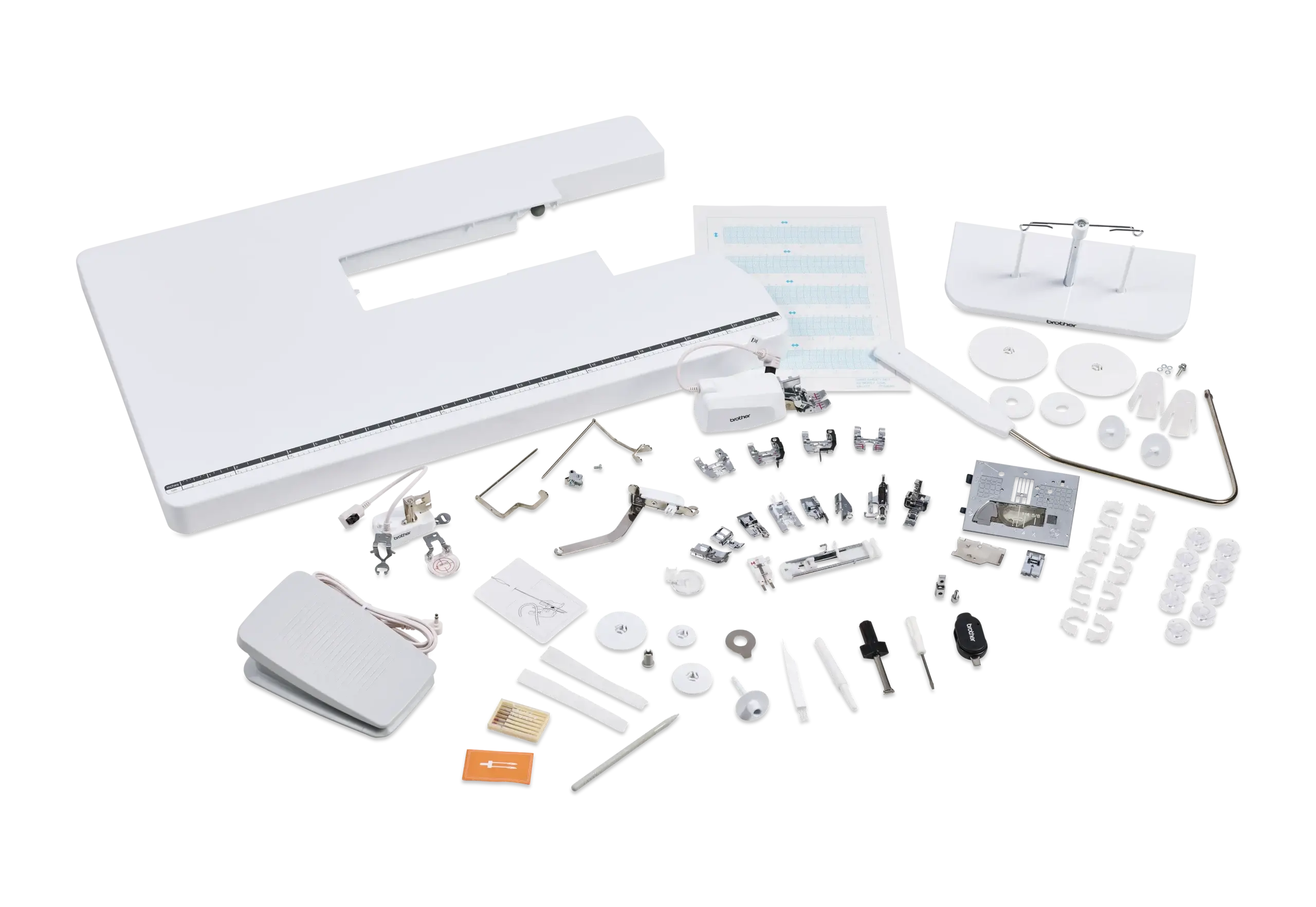 Dodatkowym walorem M380D jest jej elegancki wygląd – jest po prostu śliczna. Może to być rewelacyjny prezent! Szczególnie, że w zestawie z maszyną znajduje się ponadto szereg akcesoriów, które można przetrzymywać w dołączonej dedykowanej im teczce. Gdy zaś maszyna nie jest używana, można ją zakryć specjalnym pokrowcem, który również jest w składzie zestawu.